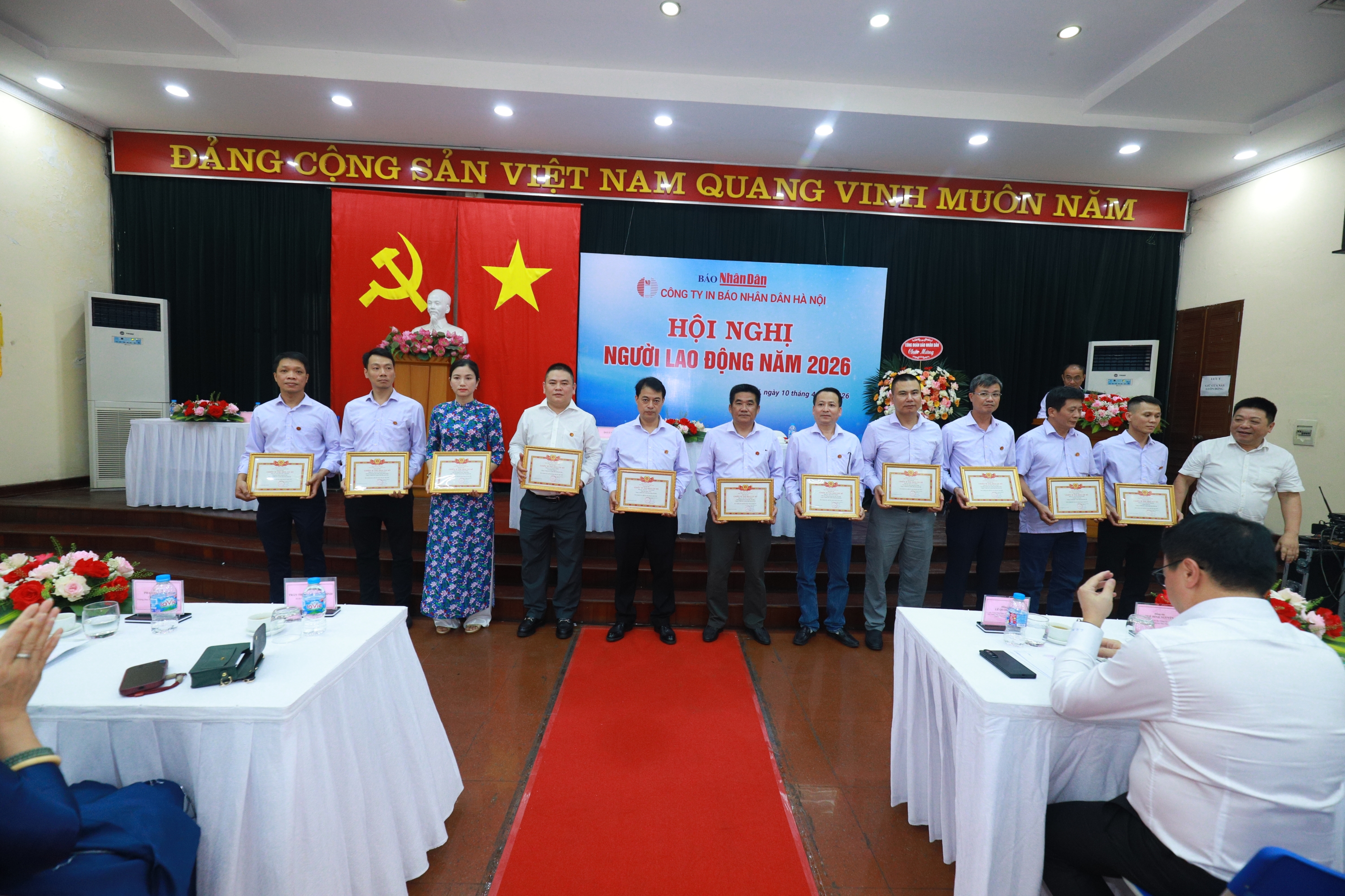 Ngày 10/4/2026, Công ty In Báo Nhân Dân Hà Nội đã long trọng tổ chức Hội nghị Người lao động năm 2026 trong không khí trang trọng, dân chủ và đầy tinh thần trách nhiệm. Hội nghị là dịp quan trọng để phát huy quyền làm chủ của người lao động, đồng thời đánh giá kết quả thực hiện nhiệm vụ năm 2025 và đề ra phương hướng, nhiệm vụ năm 2026.